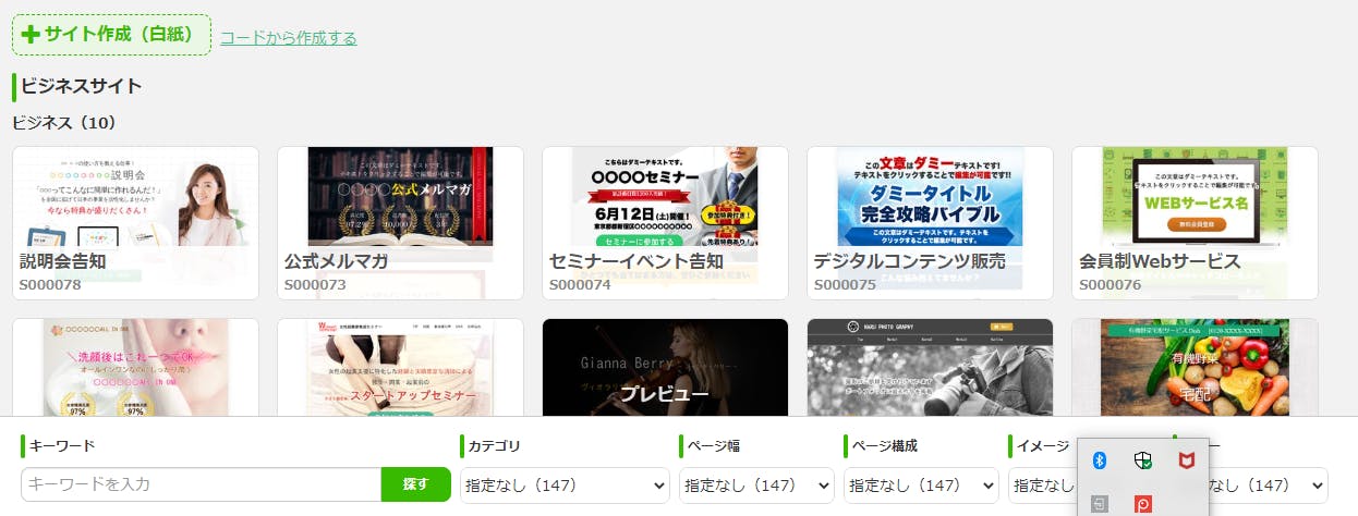 ここで今回は「サイト作成(白紙)」をクリックします。