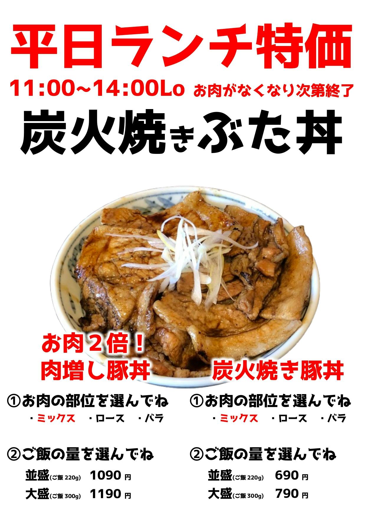 炭焼き豚丼は、しらかば店限定です。