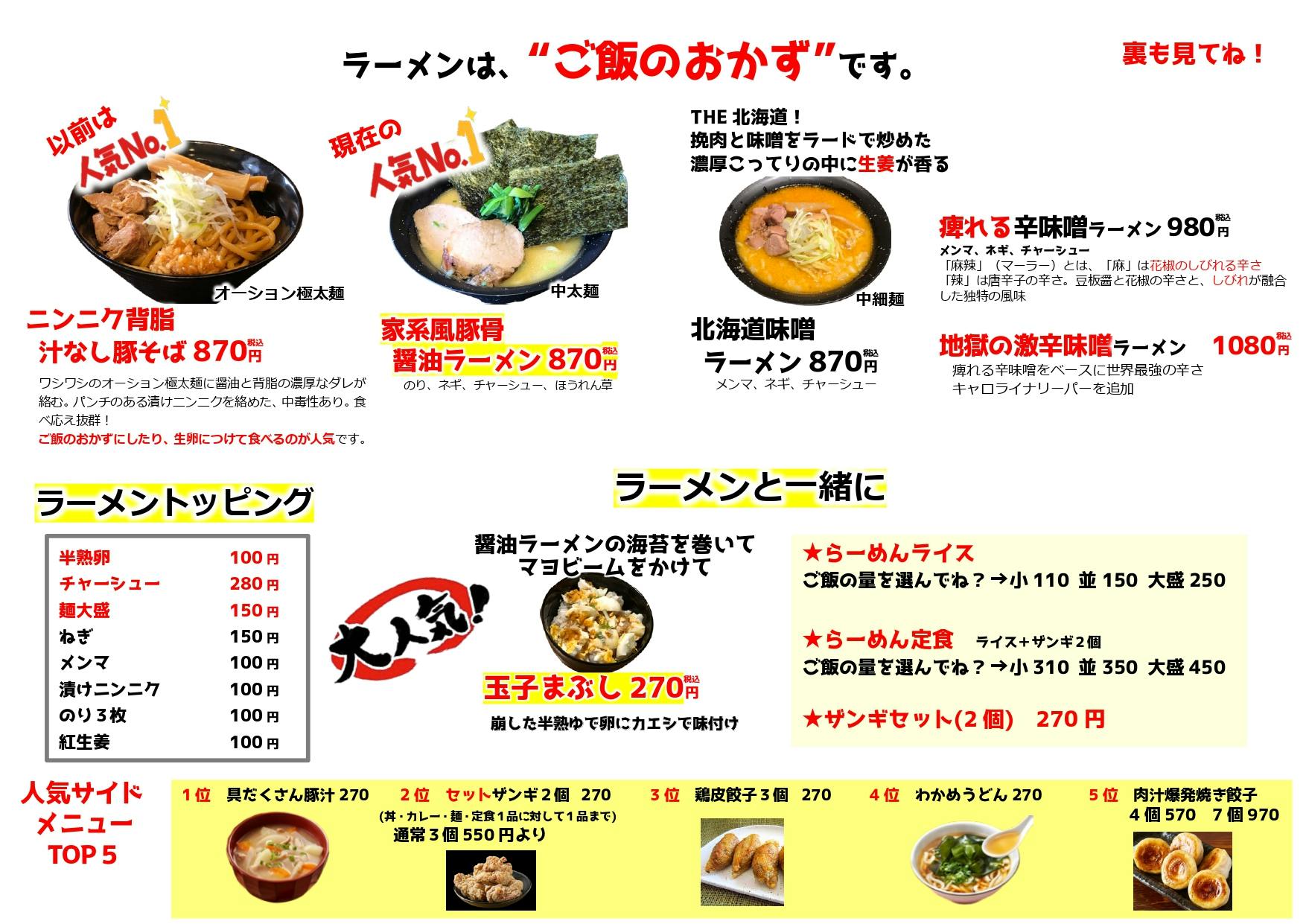 豚丼、焼き鳥丼は、ザンギ定食は、しらかば店限定メニューです。