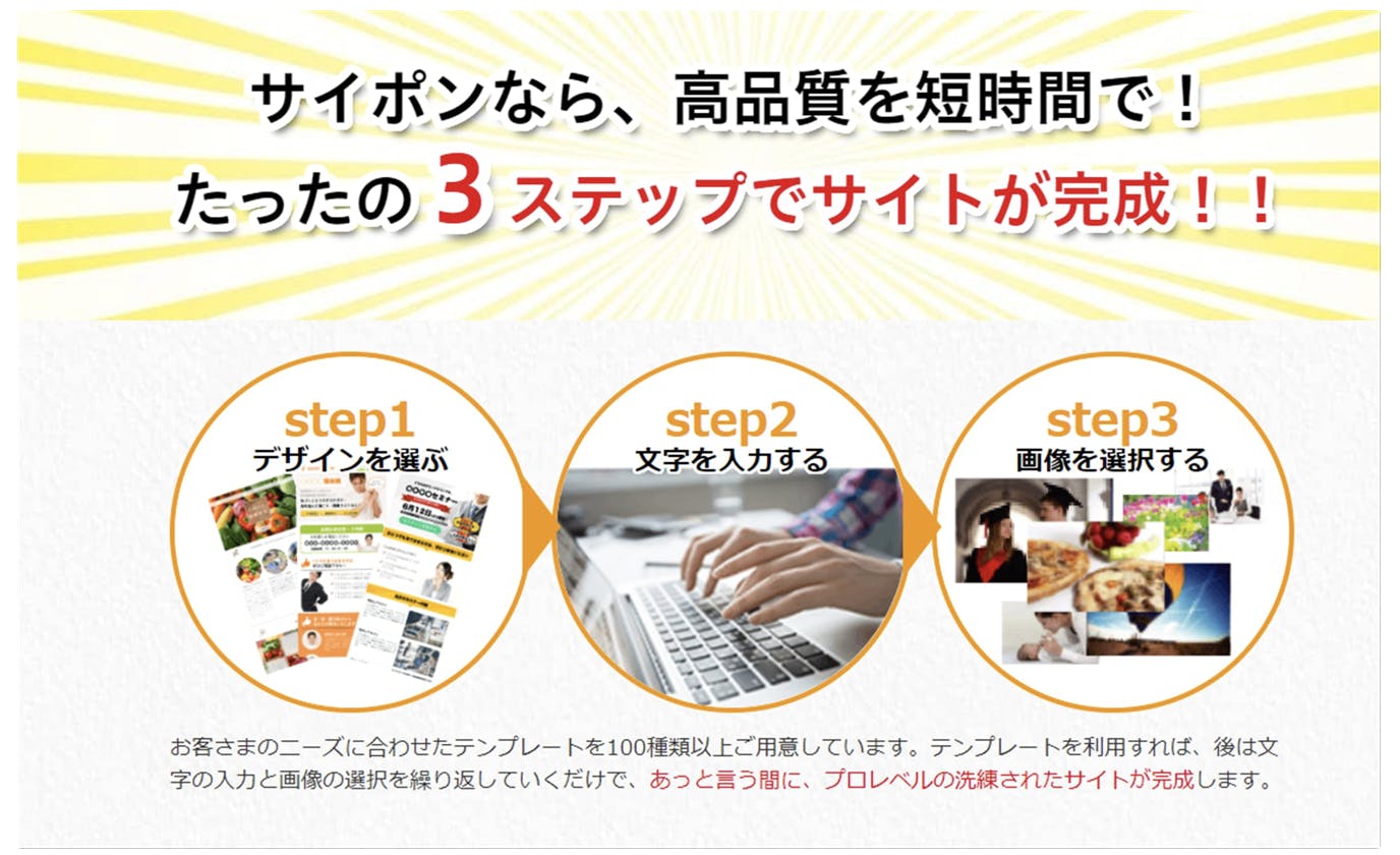 たったの3ステップでサイトができちゃうんです!