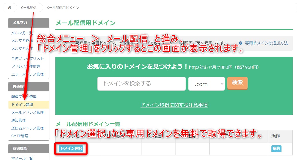 ■【必須】専用ドメインの取得(無料)、メールアドレス作成