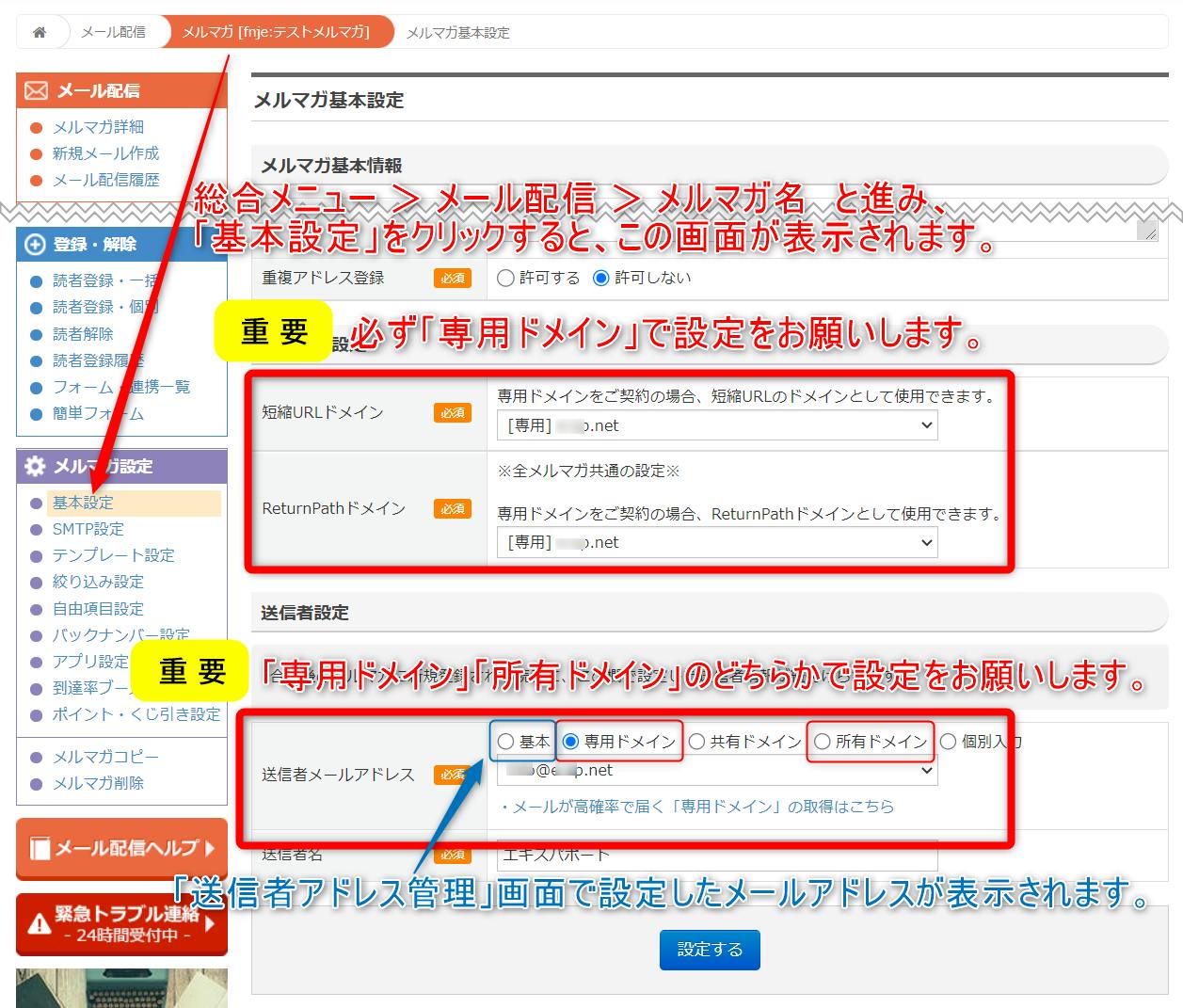 「短縮URL」「リターンパス」は、必ず専用ドメインを設定してください。