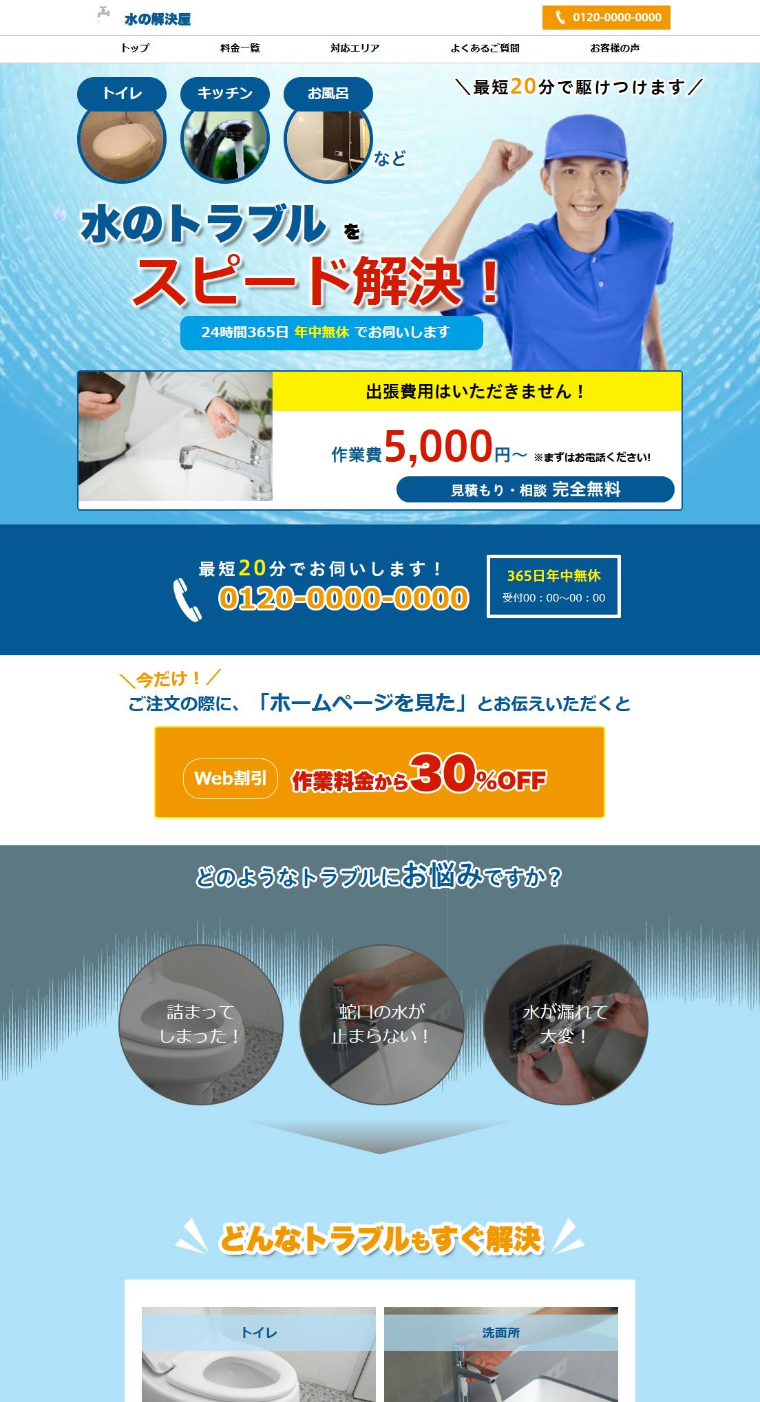 水道工事関係の業者に最適なテンプレートで、全7ページに渡って自社の特徴や強みをアピールすることが出来ます。