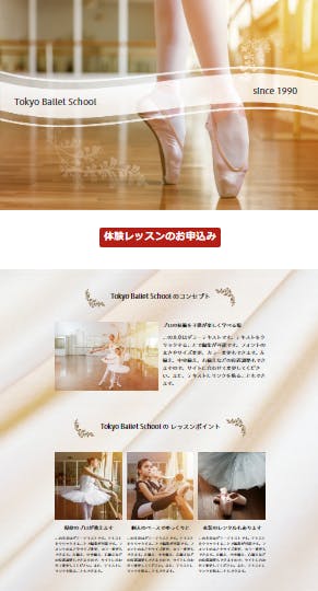 バレエ以外にも様々なジャンルのダンススクールに使えるテンプレートとなっていて、その汎用性の高さも特徴のひとつと言えます。
