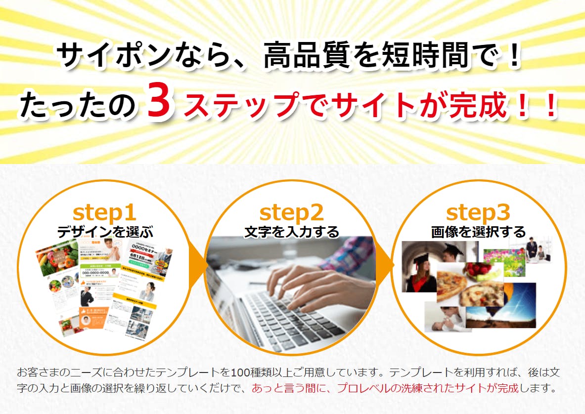 オンライン力のベースになるのが、ホームページ、もしくは、ブログになるのですが、サイポンを使うことで、これらを簡単に作ることができます。
