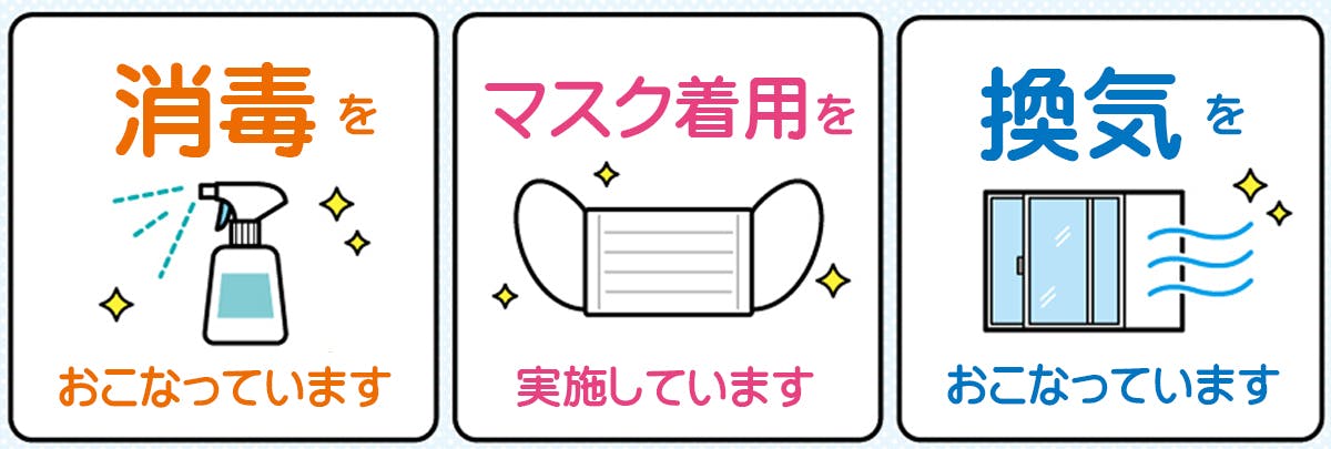 *換気機能付きエアコンを使っての換気、適時窓を開放しての換気をおこなっております。
