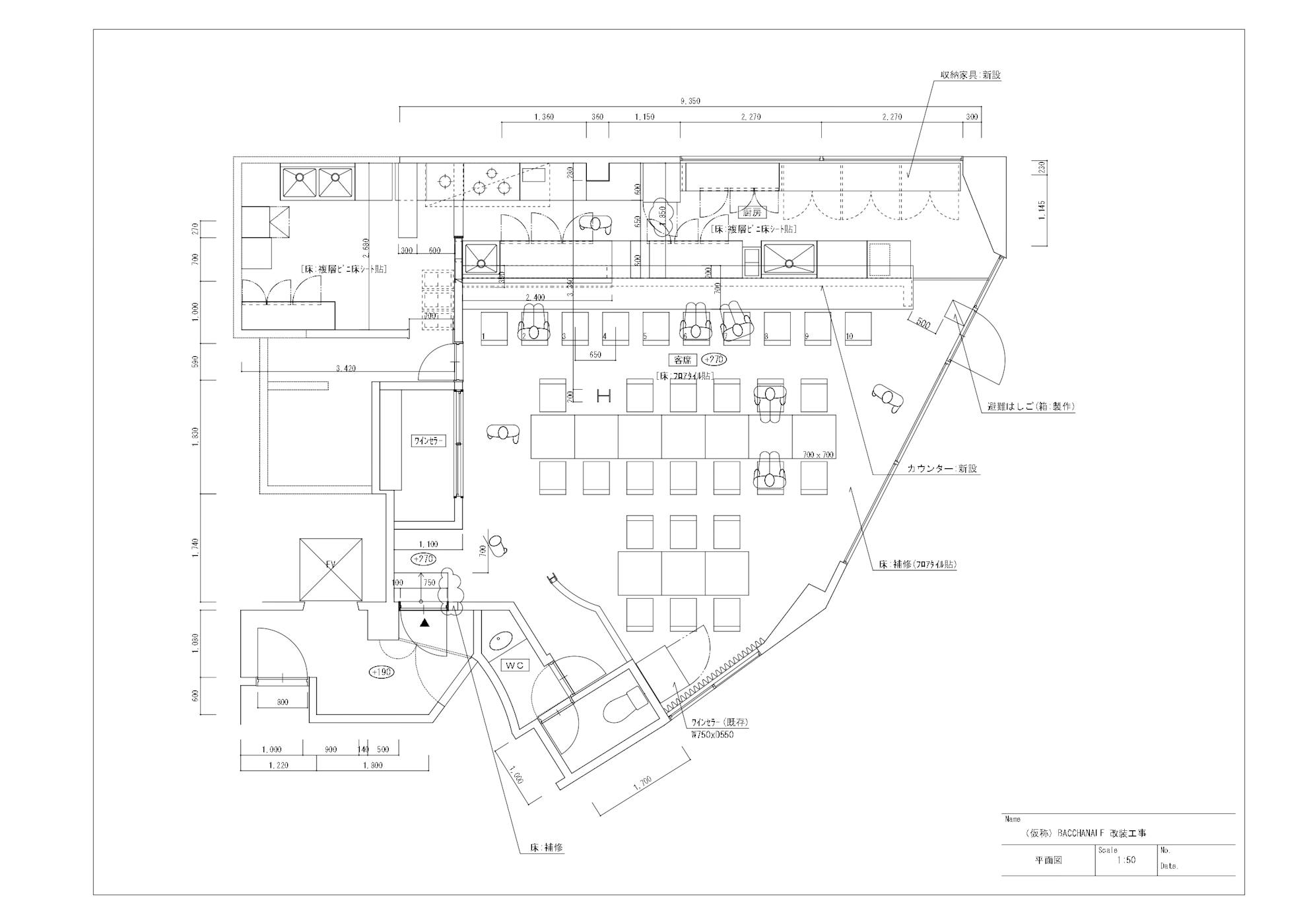 カウンター10席 テーブル席は今のご時世、図面ほどは置けないので10席ほどになりそう・・