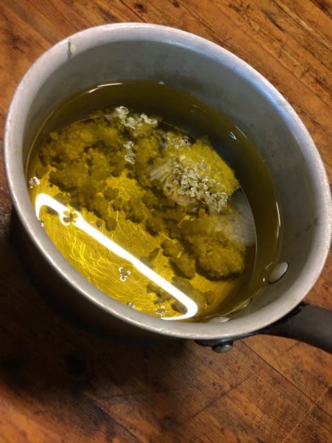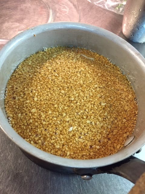 ニンニクがほんのり茶色に色づいて香ばしい香りが出てきたら