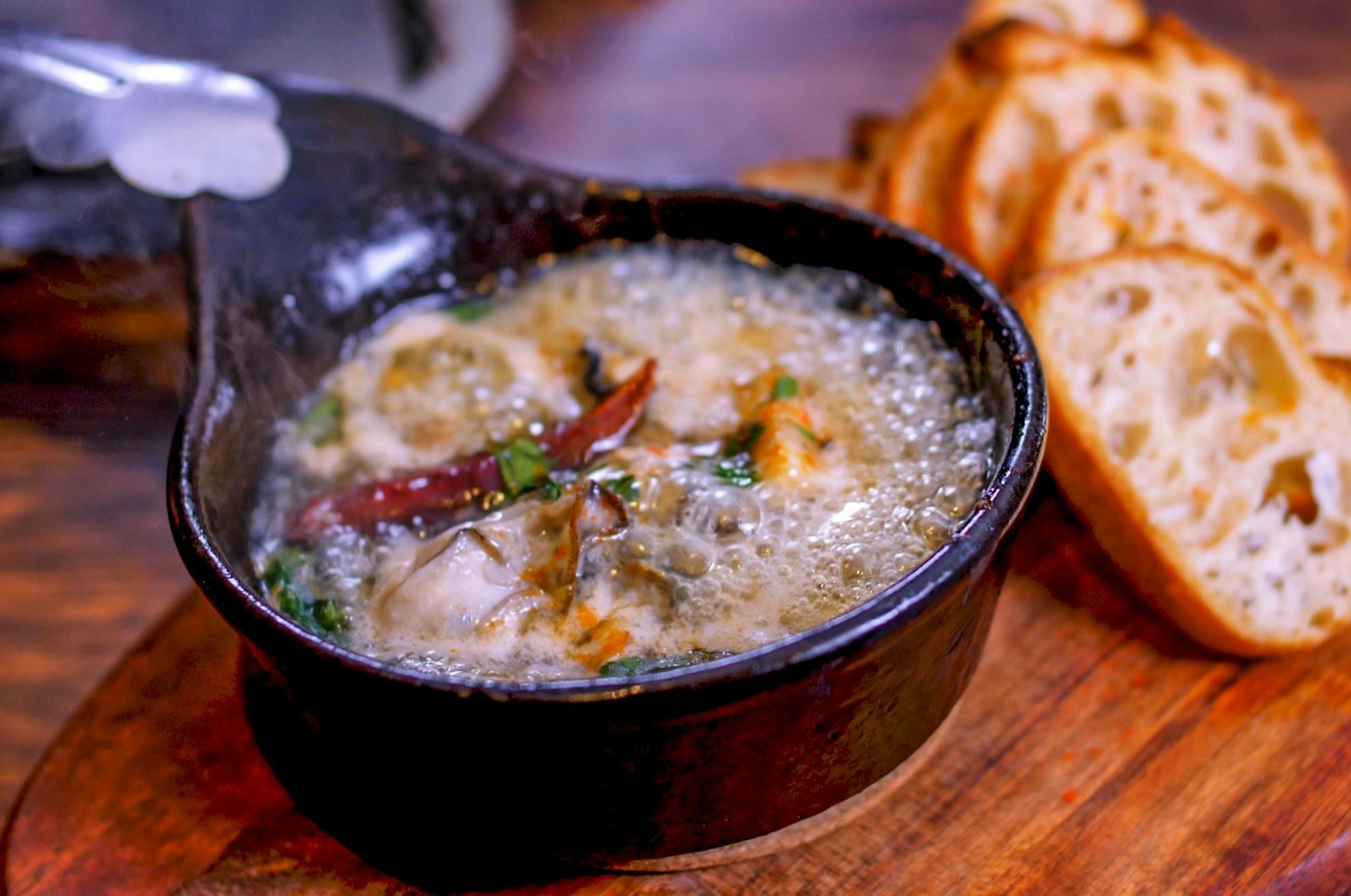 「材料に塩をしてガーリックオイルでぐつぐつするだけなんやどな…」