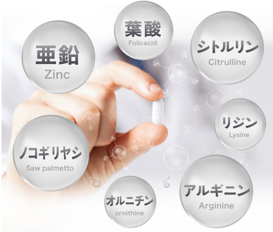 ここでは、亜鉛以外にも葉酸・シトルリン・リジン・アルギニン・オルニチン・ノコギリヤシという成分が追加になりました。