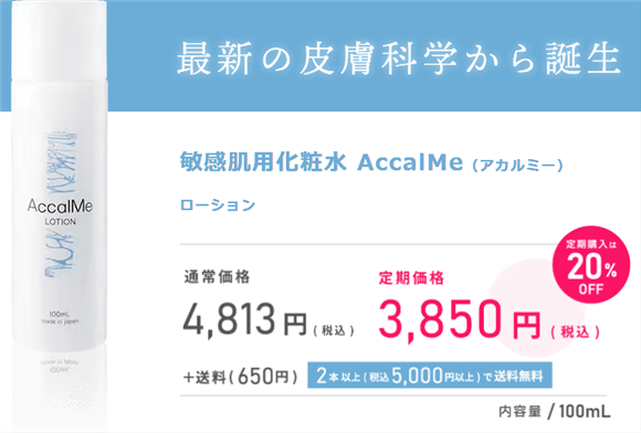 公式サイトからアカルミーのオイルフリー化粧水まだ通販したことがない方向けに単品4,813円するところ963円引きとなる3,850円で買うことができます。