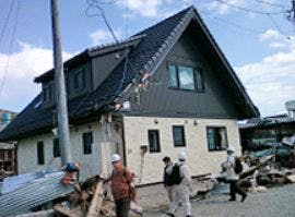 ▲4mの津波に耐えたツーバイフォー住宅(東北地方太平洋沖地震 石巻市)