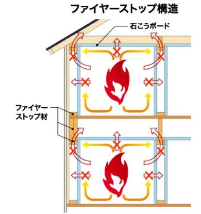 ファイヤーストップ構造が火災の被害を最小限に抑えます。