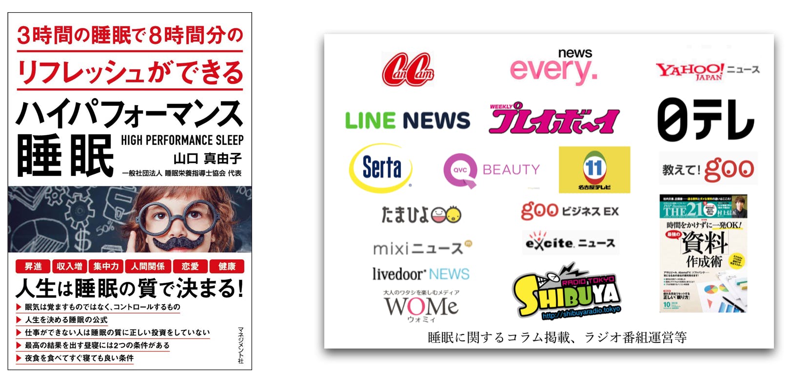 睡眠の専門家として、セミナー・講演は累計200回以上。NHKジャーナルやテレビショッピング専門チャンネル『QVC』などのメディアに睡眠の専門家として出演。その他、執筆や監修などメディア掲載多数。