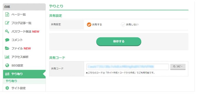 作ったサイトにはやりとりコードが割り当てられる