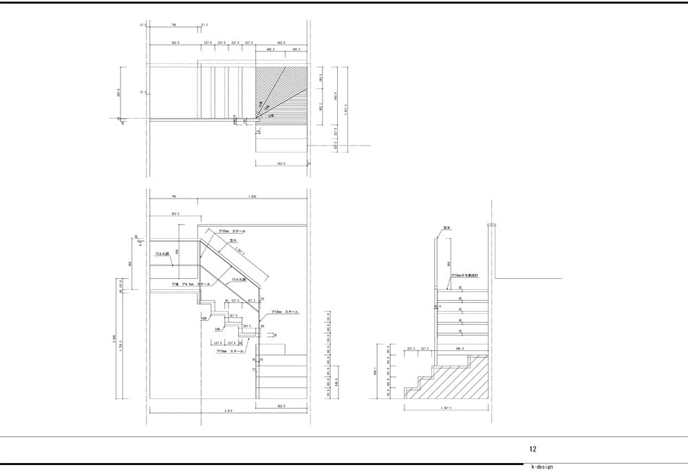 階段の図面については完全、未完全なものも含まれ、スチール部分の詳細も載せたりしていますので現場取付についても分かる図面も収録しています。