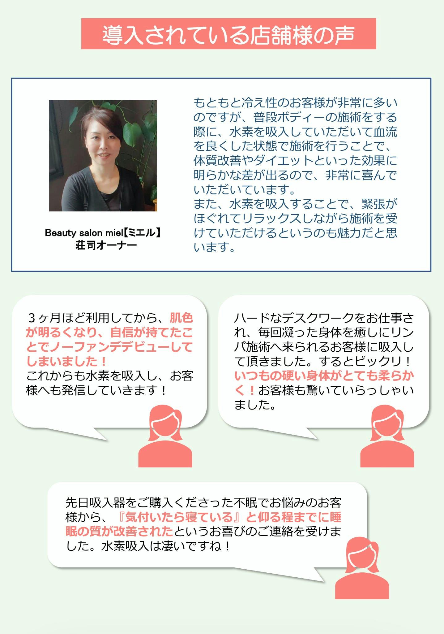 20秒ほどで『水素吸入メリット』(文章は準備します)をしていただき