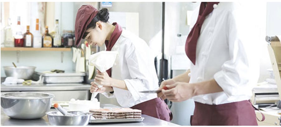 菓子・パン作りは基礎が大切です。そのために様々な種類の菓子・パン作りで基礎力を高め、応用技術を学んでいきます。 2年目以降は菓子・パン実習を中心に実際の店舗(エクル広尾店)で行います。 製菓製パン科に入学した生徒(新入・転編入)は学年が遅れることなく、高校卒業資格を取得し、卒業後は自立支援を促し、エクルの社員として働くこともできます。
