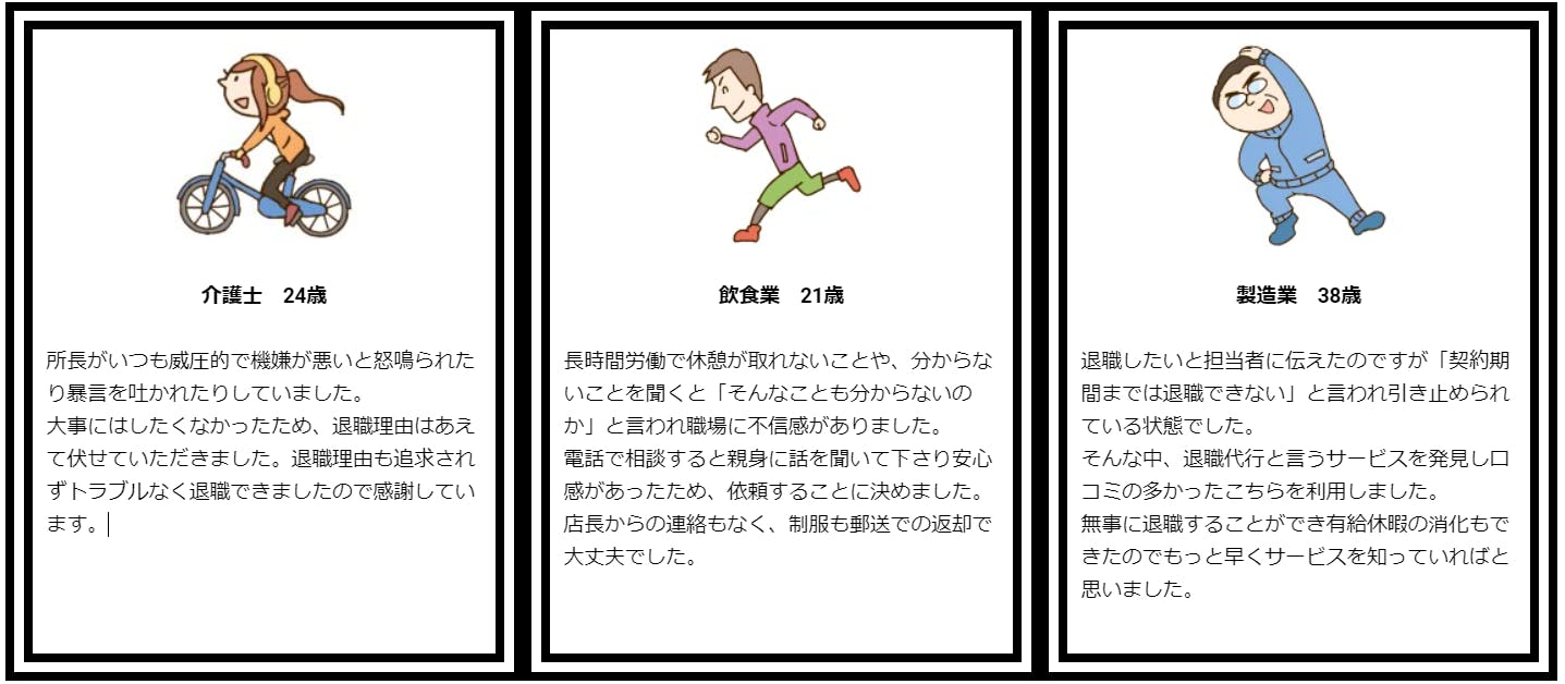 またスピード24時間即日対応というのも急ぎの人には良い仕組みです。もう会社に行きたくないと思ったら1日も早く辞めたいと思うものです。その状態で何日も無理やり出勤をしても仕方がありません。