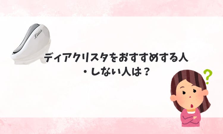また、多機能であることも考慮すべきです。複数の美容家電を別々に購入するよりも、1台で多様なケアができるディアクリスタの方が結果的に安くなる可能性があります。