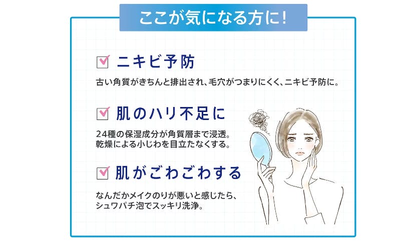 「洗い上がりがしっとりモチモチ!」(30代女性)、「乾燥肌でもつっぱらない!」(40代女性)こうした声から分かるのは、保湿力の高さが多くの人を魅了していること。