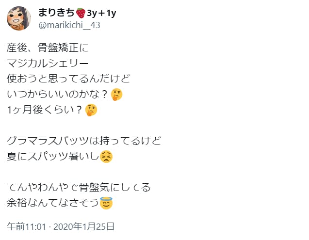 普通分娩後の骨盤ケアは、健康な体を取り戻すためにも、美しい体形を保つためにも重要です。自分の体と向き合いながら、マジカルシェリーを上手に活用していきましょう!