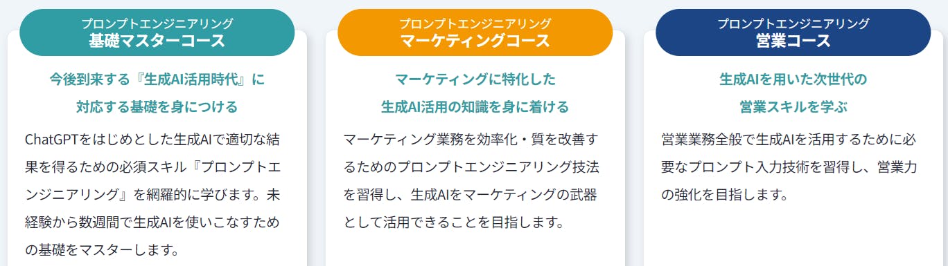 DMM 生成AIキャンプのコースは以下の3種類になっています。