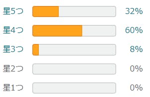 Amazonではこのような評価がついていました。星4つが一番多く、また悪い評価は全然ついていないということ。全体的に評価が高めでみなさんが良い効果を感じているということがわかります。