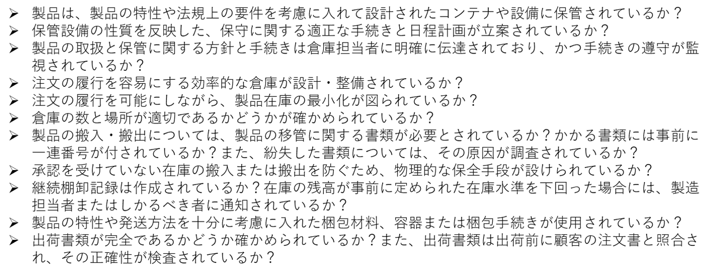 下記の項目は物流企業のロジスティクス監査で監査項目の例を掲載