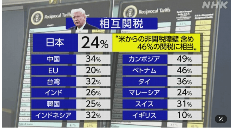 日本は平均の関税率を46%とみなし、その半分の24%を相互関税とすると発表