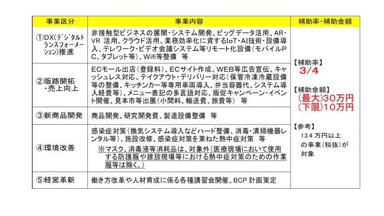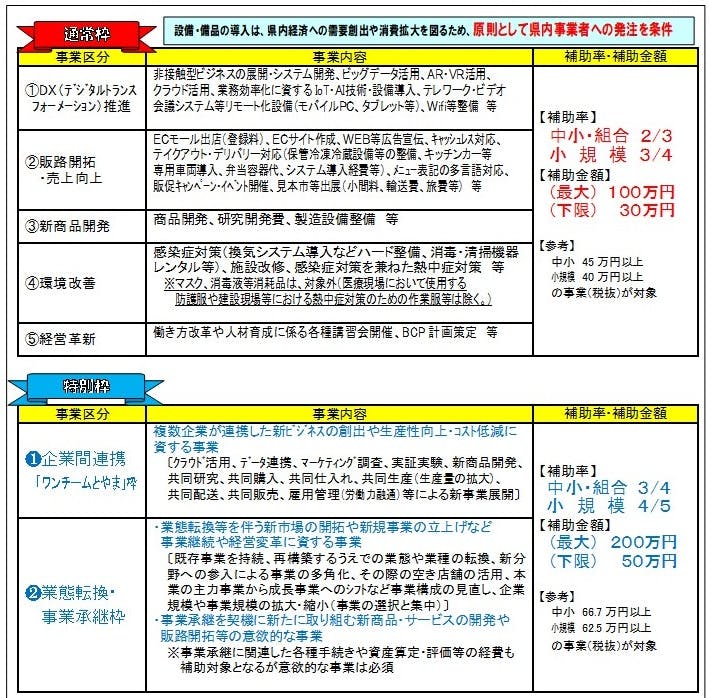 一般型&コロナ型持続化、富山県再起支援、リバイバル、