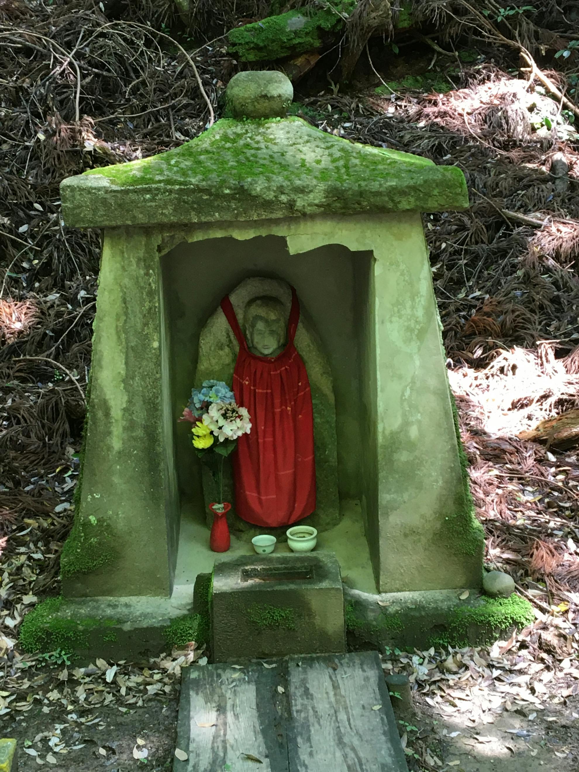 途中、奈良の水の源泉である「鶯(ウグイス)の滝」や「首切り地蔵(荒木又右衛門が試し斬りしたと伝えられる)」など歴史好きにはたまらない街道です。「鬼滅の刃」の主人公・炭治郎が斬ったとされる岩??「一刀石(いっとうせき)」なんかも...道沿いには多くのお地蔵さんがあるのですが、その中で最も私の印象に残ったモノを紹介します。