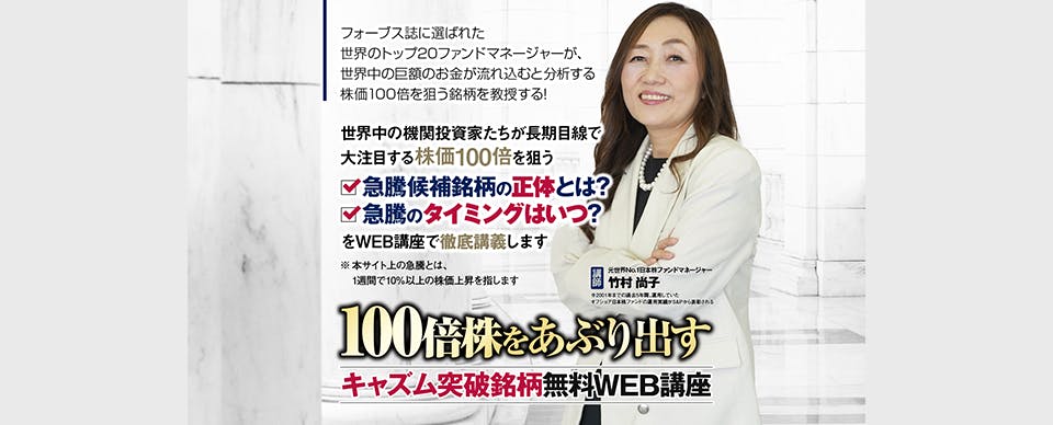 その理由はやはり、竹村尚子氏という米国最大手の機関投資家で非米国籍初のファンドマネージャーを務めあげた大物が講師を務めるWEB講座だからではないでしょうか。