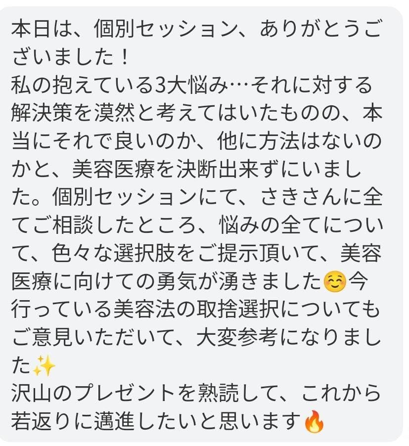 「あなたに合う若返り法をこの個別セッションで教えていく」というものです。