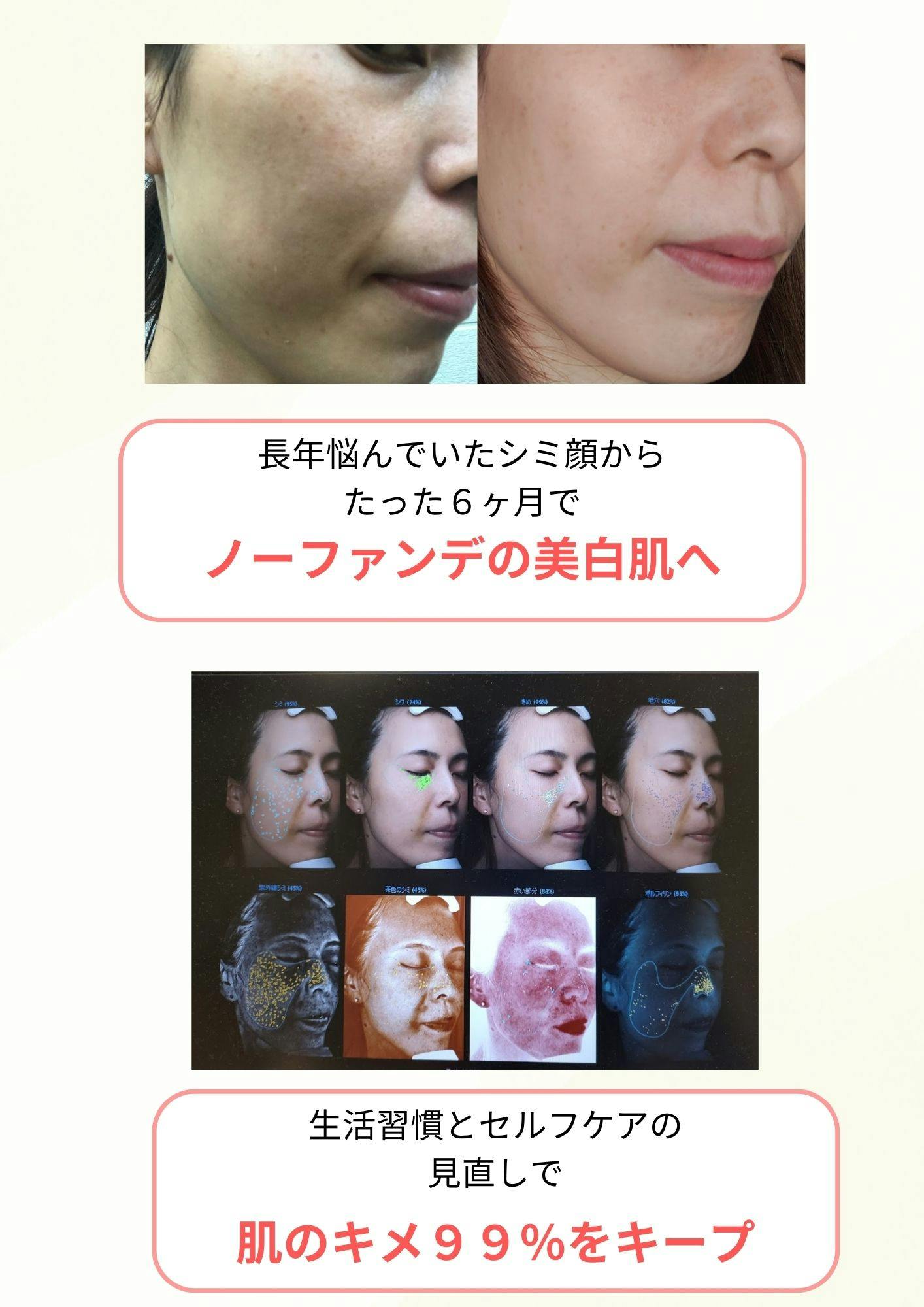 私は現段階で肌年齢-7才を達成、肌のキメ細やかさは99%を維持しています。