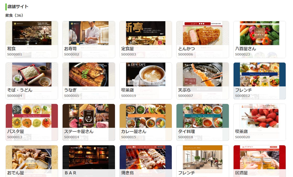 テンプレートは飲食業、理髪店、生花店、スーパー、印刷業、英会話教室etc