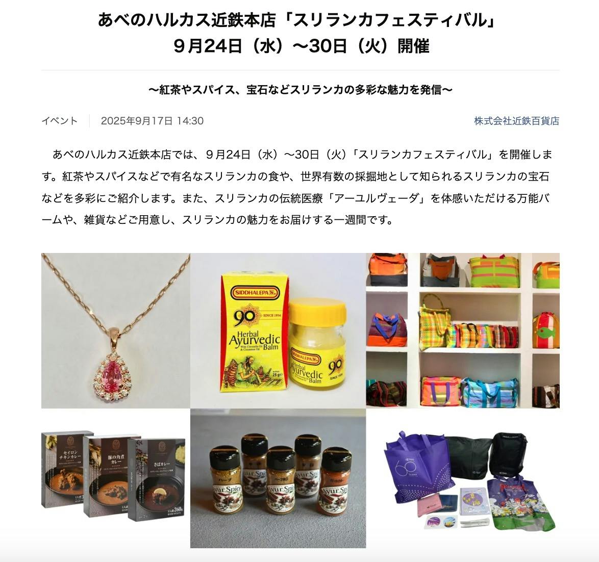 2025.9.24-30 スリランカフェスティバル in あべのハルカス近鉄本店