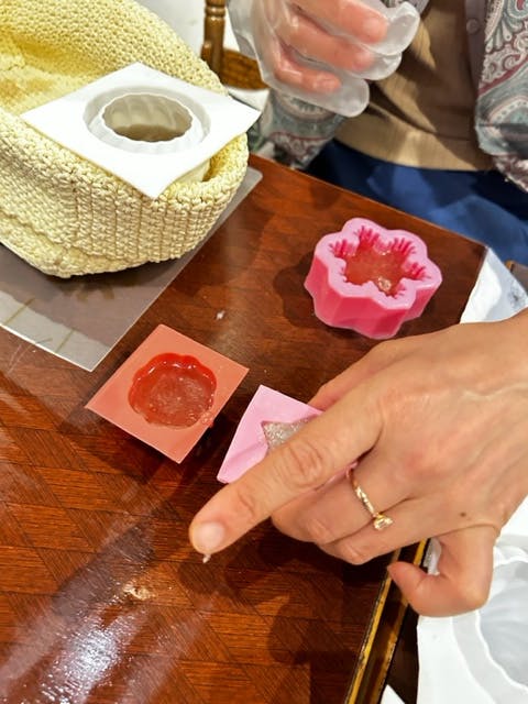 他のワークショップなどでグリセリン石鹸を作ったことのある方が私のアロマグリセリン石鹸ワークショップに参加させるとテクスチャーの違いに驚かれるだろうと思います。
