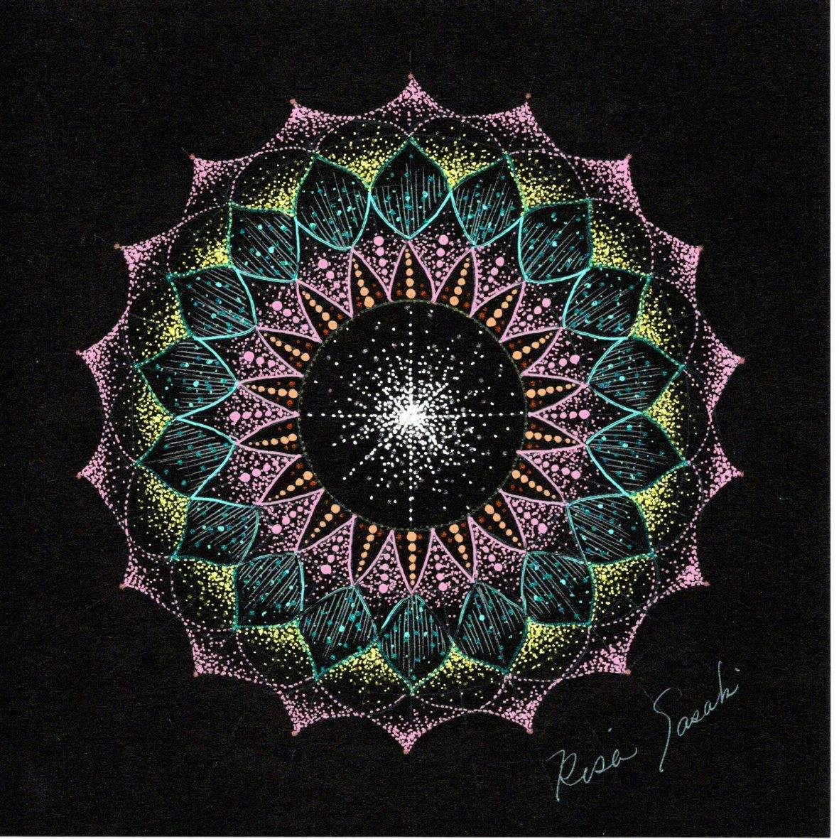 絵なんか描いたことがなく、別世界と思っていたけれど私にもできた。キレイな曼荼羅が描けて嬉しいです。