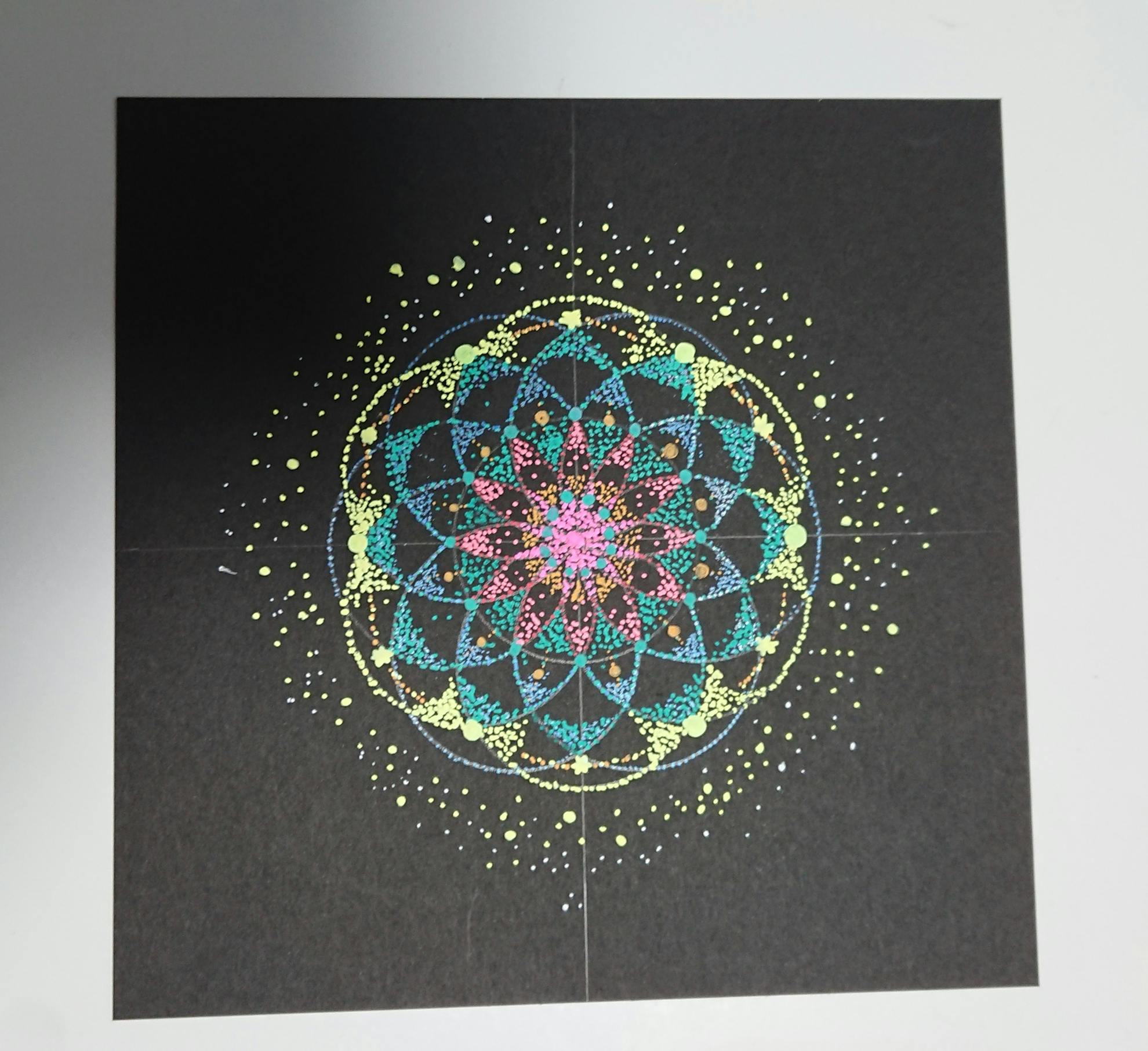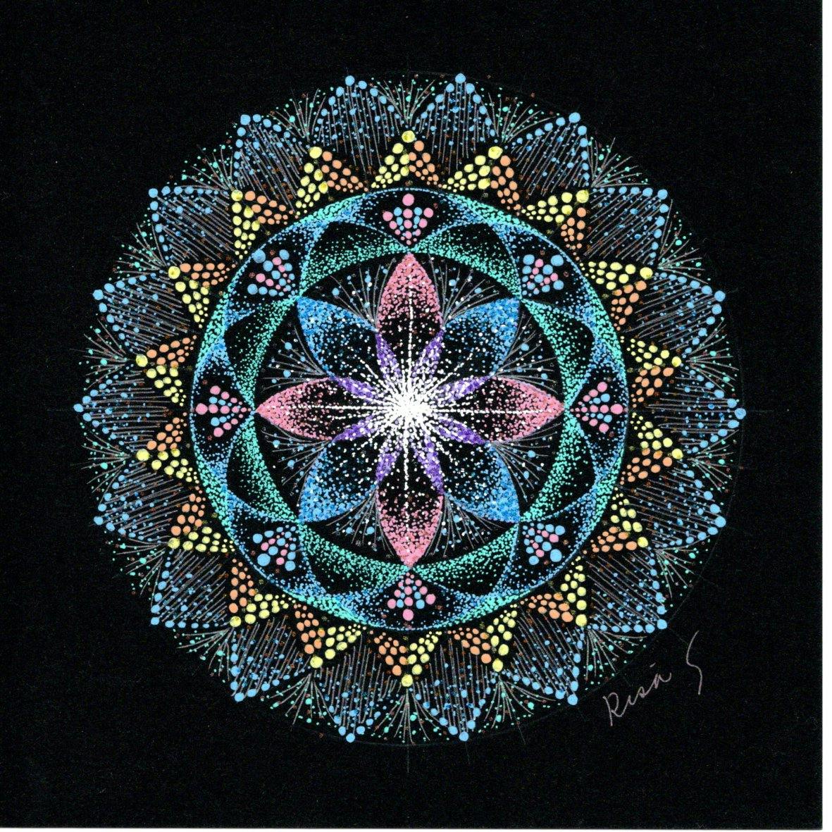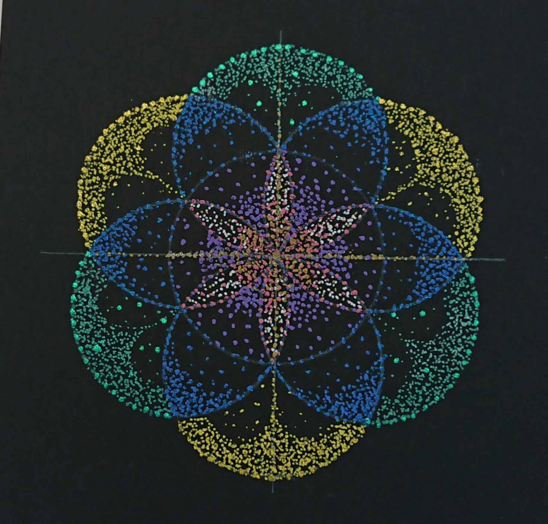 1・コンパスで下図を書いて点描する(6つの円、8つの円、12の円の描きかた)