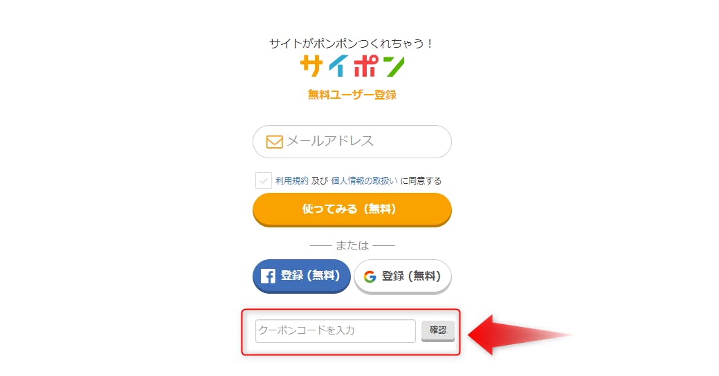 2.クーポンコードを入力し確認ボタンを押してください