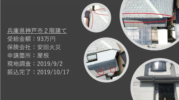 保険金額の入金までは電話から約4週間ととても早く、金額も申し分ないものでした。また台風などの自然災害がきても、迅速に対応頂けるという事実が、日々の生活の不安を一つなくしてくれたような思いです。