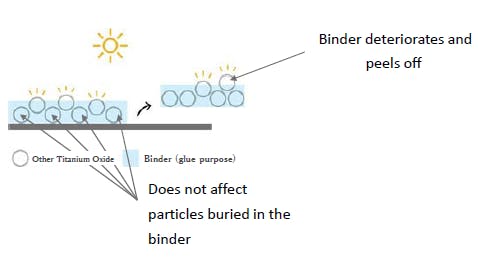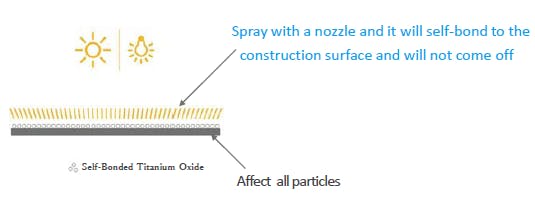 When the water evaporates after coating, the titanium oxide particles form strong bonds each other to any kind of surfaces for a long period of time.