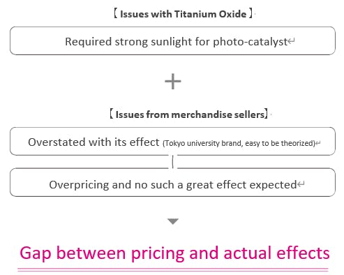 Titanium oxide is one of the few photo-catalyst used for industrial purposes. About half a century after its discovery, titanium oxide related products and services are provided and available, their recognition and penetration rate are low.