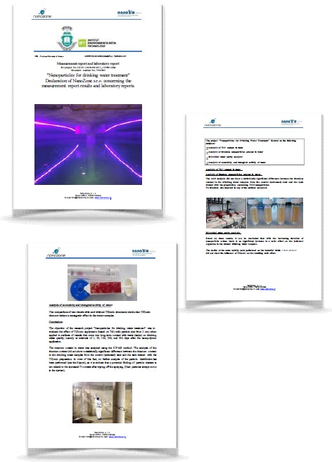 Analysis of titanium content in water, titanium nanoparticle content in water, water purity of microorganisms, ecotoxicity of water and life activity, respectively, after 1 day, 30 days, 100 days, 200 days, and 300 days after nanozoneCOAT was applied.