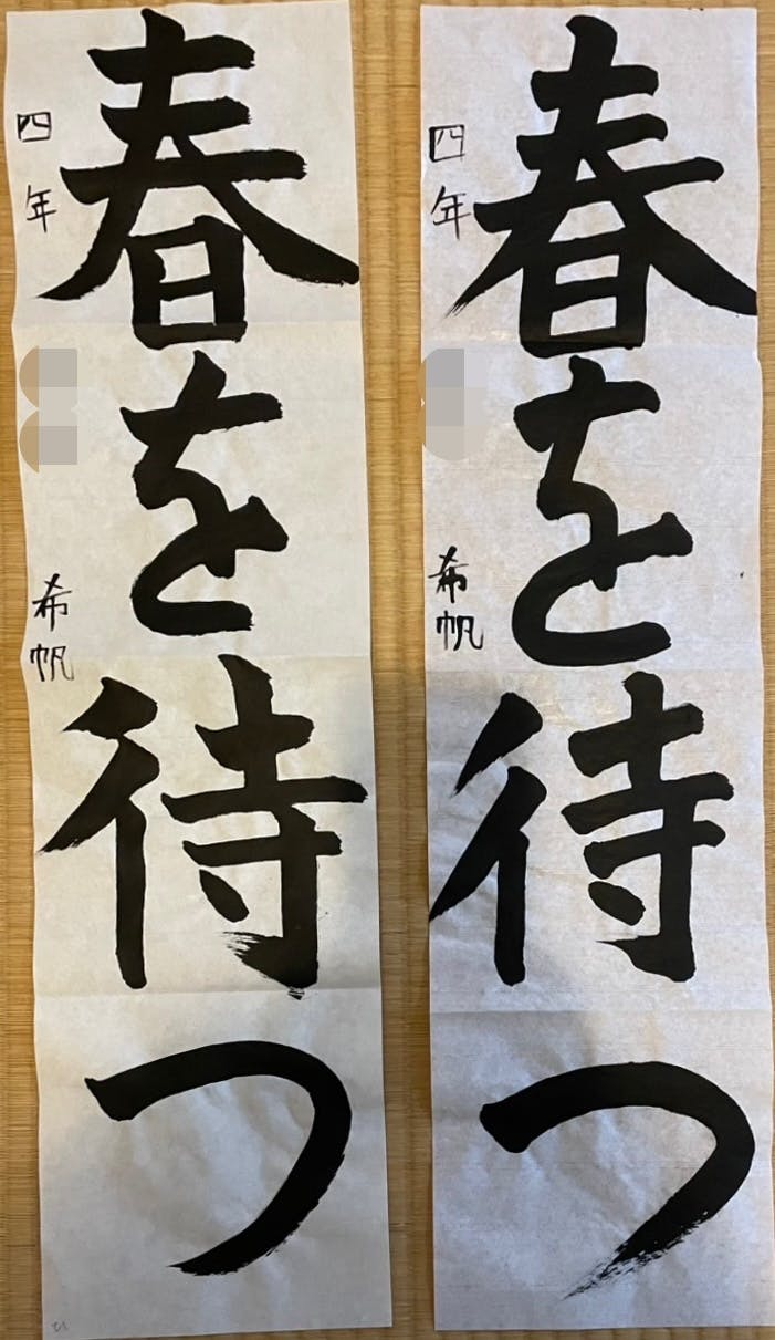 冬休みの宿題の書き初めが完成しました!(2025年冬)