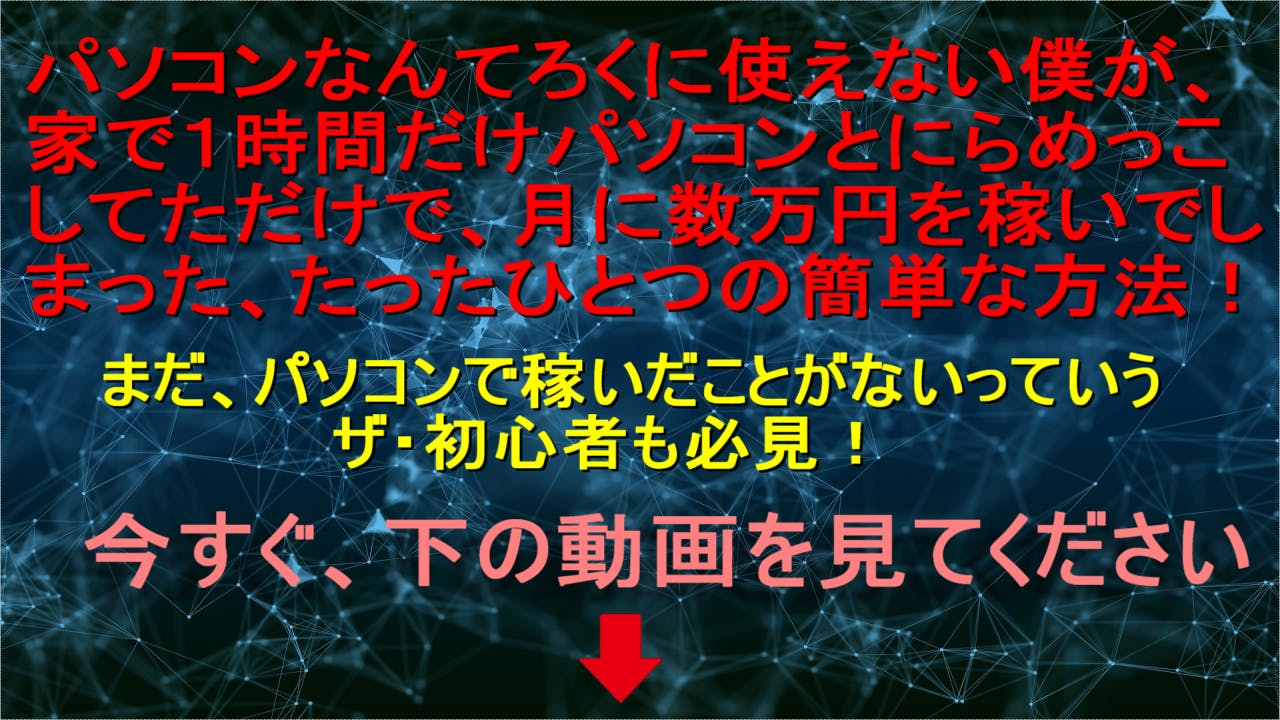 特典で、今すぐにパソコン・スマホでお金稼げる裏技の動画公開中!