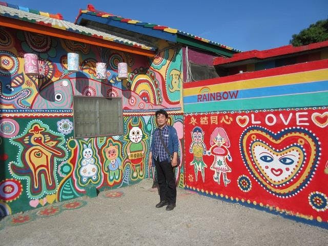 彩虹眷村は日本語で「虹の村」と呼ばれ、「虹のおじいさん」こと黄永阜さんが、たった一人で絵を描いている。