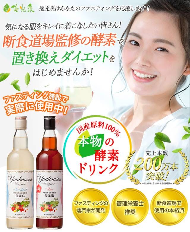 優光泉は、発酵飲料として知られており、スタンダード・梅・プレミアムなど複数の味が展開されています。