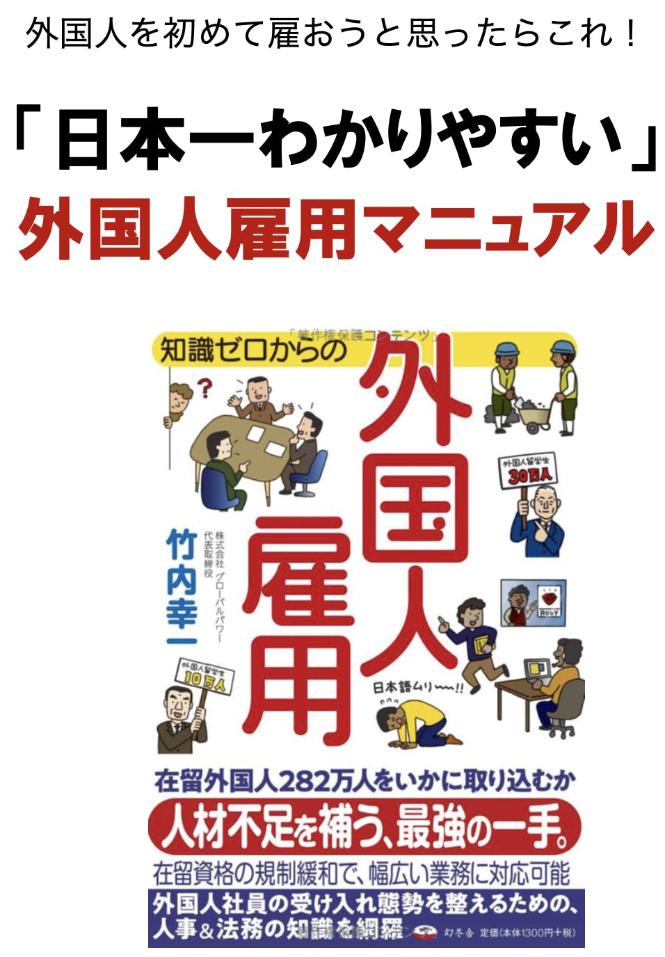 外国人雇用にまつわる情報を法律、在留資格、採用実務まで、この1冊にまとめた。